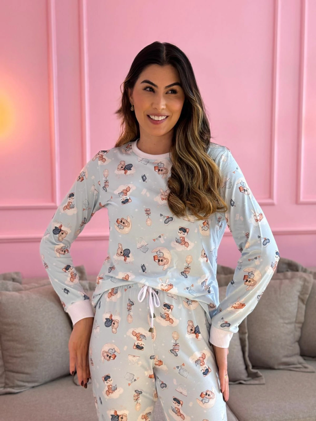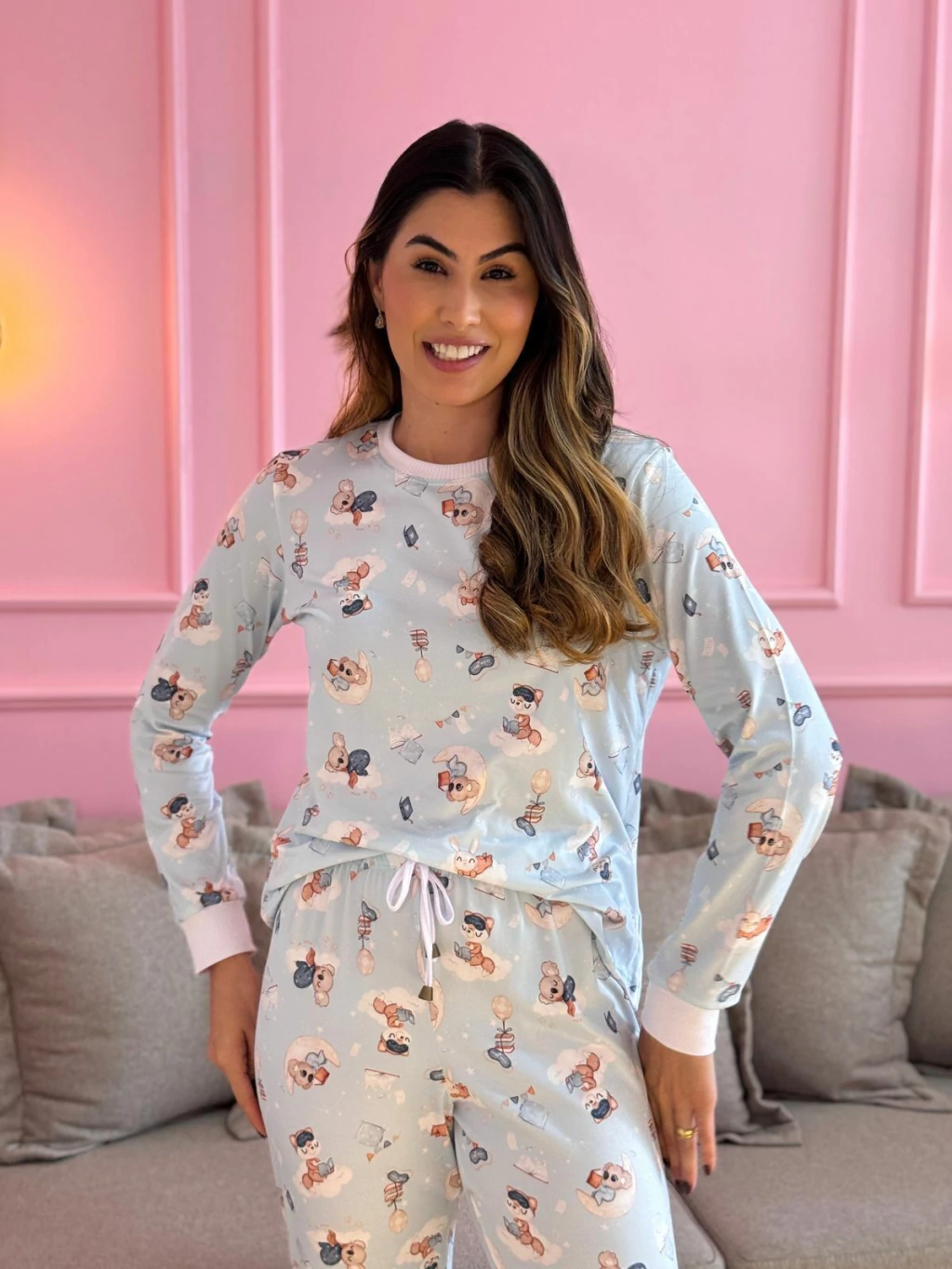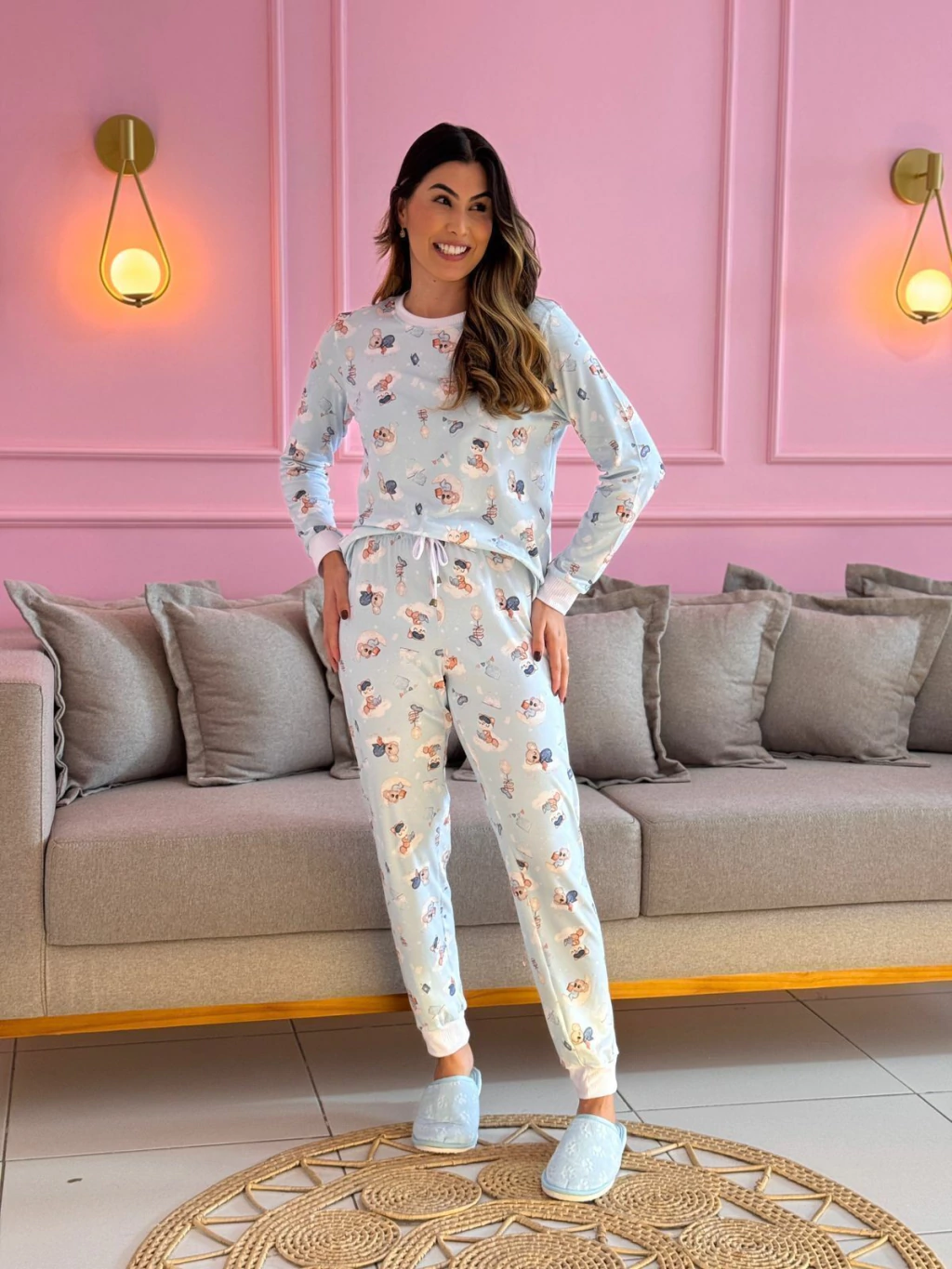 Pijama baby bloom super fresquinho confeccionado em suede toque de pêssego, com elasticidade que acompanha o movimento do seu corpo, toque macio, molinho e fresquinho... Caimento elegante e uma delícia de usar! Blusa com gola em ribana de algodão. Calça com elástico e cadarço na cintura, lindo e extremamente confortável.